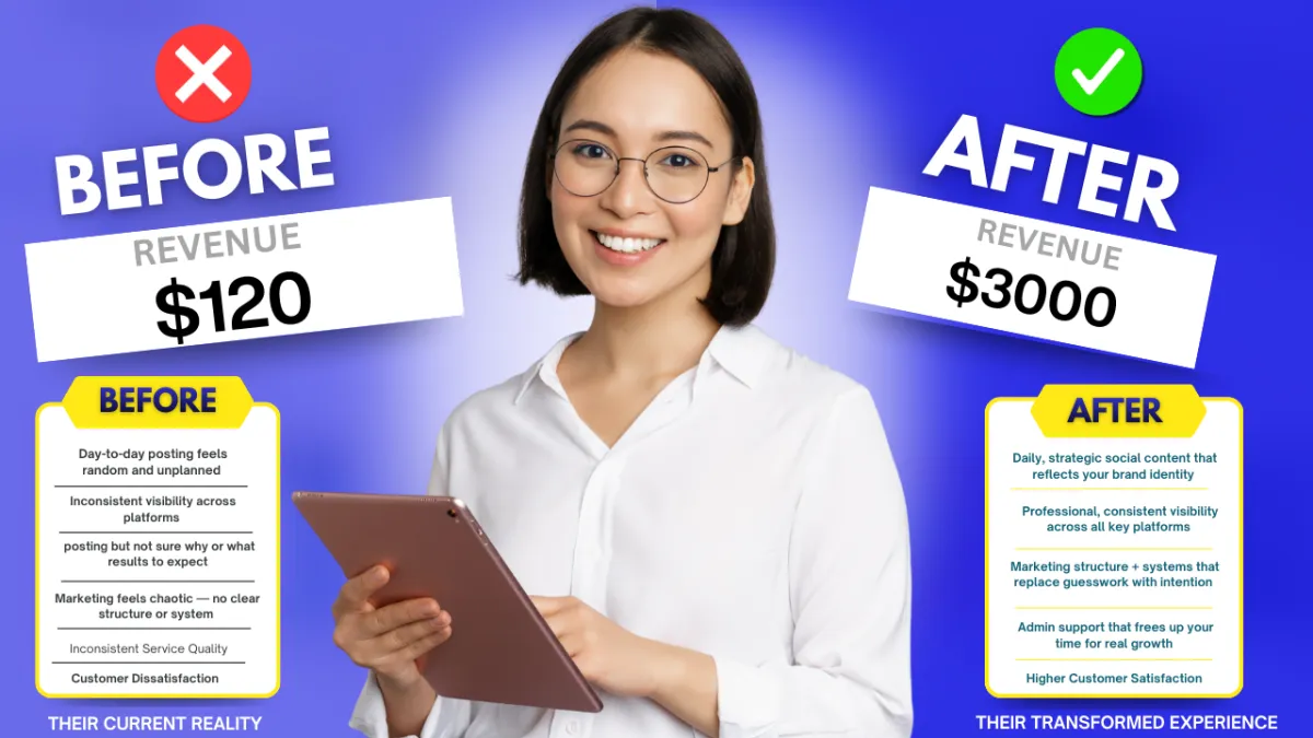 Your business deserves to show up consistently — without you juggling content, admin, and marketing alone. This package gives you structured support so your brand stays visible, organized, and professional every single month.